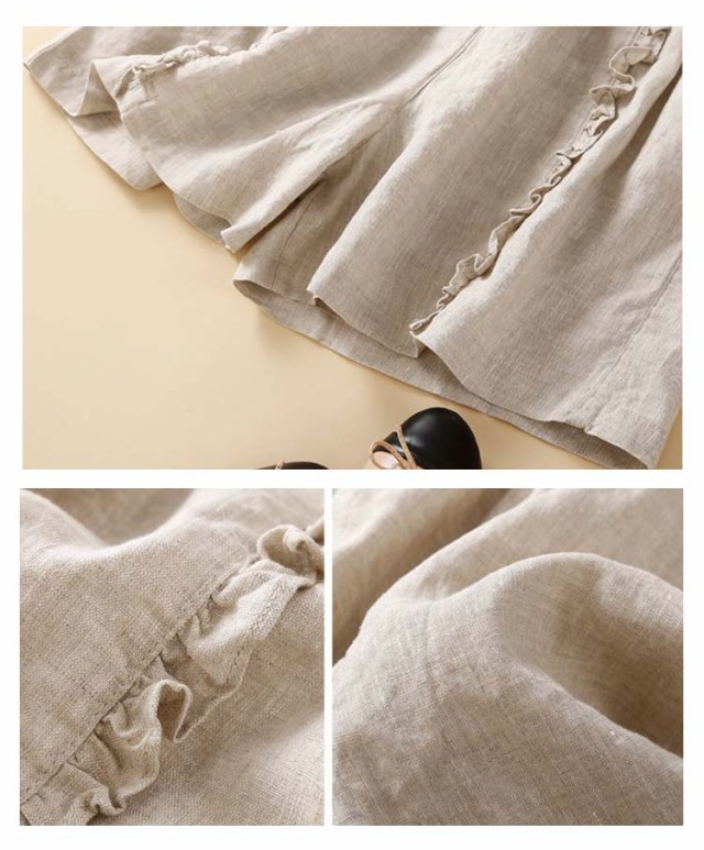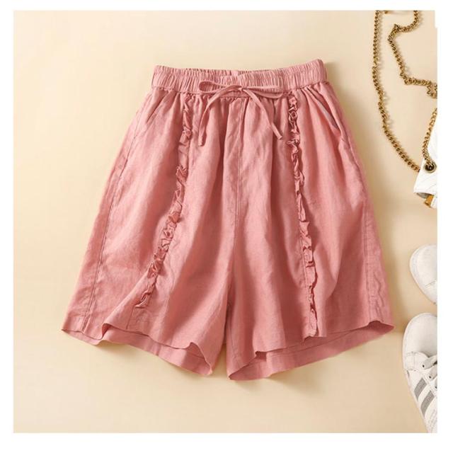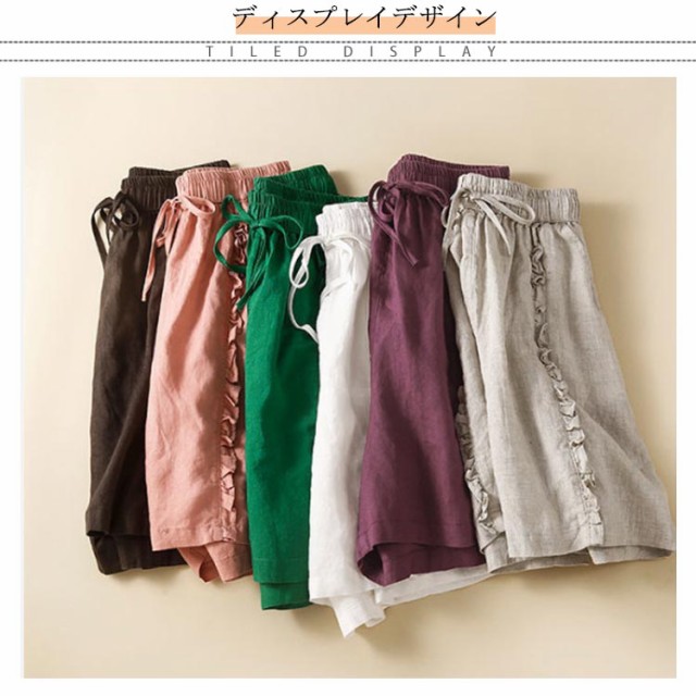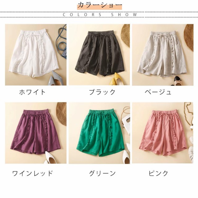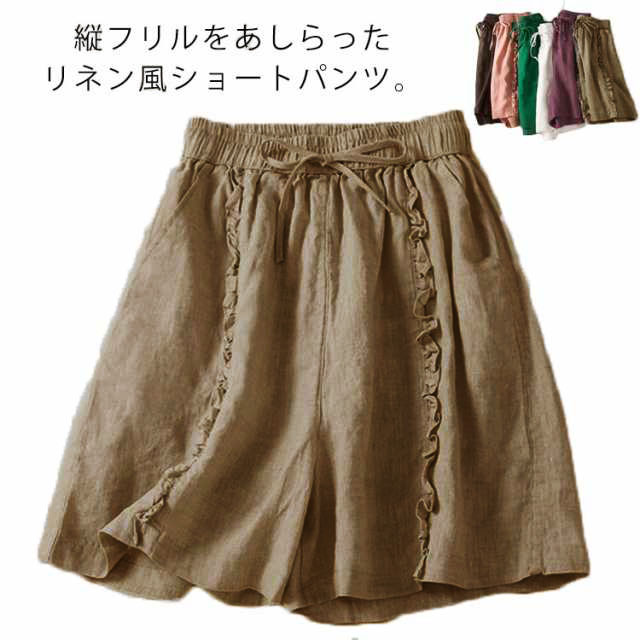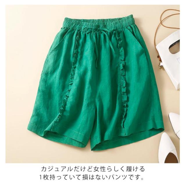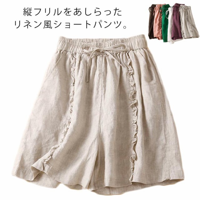 ショートパンツ 短パン レディース リネン風パンツ ハーフパンツ ワイドパンツ フリル 綿 コットン 無地 ショート丈 薄手 涼しい パンツ ゆったり 大きいサイズ シンプル かわいい ナチュラル 女性用 春 夏 夏服 部屋着 ルームウェア 送料無料