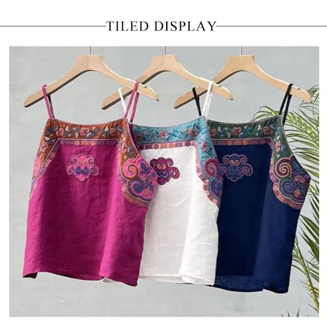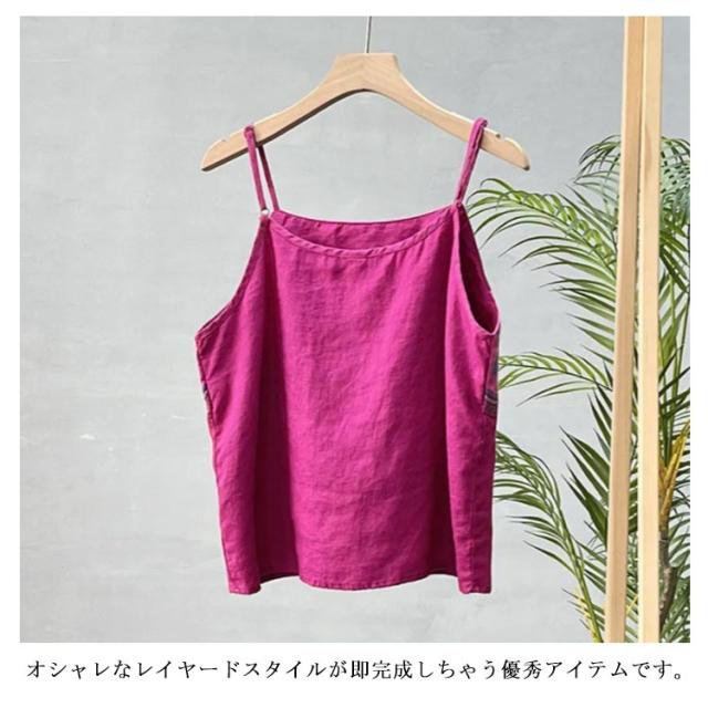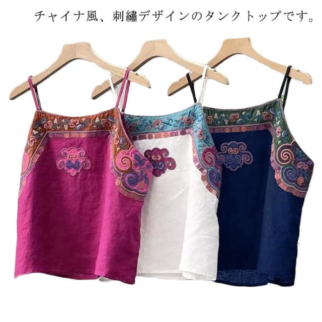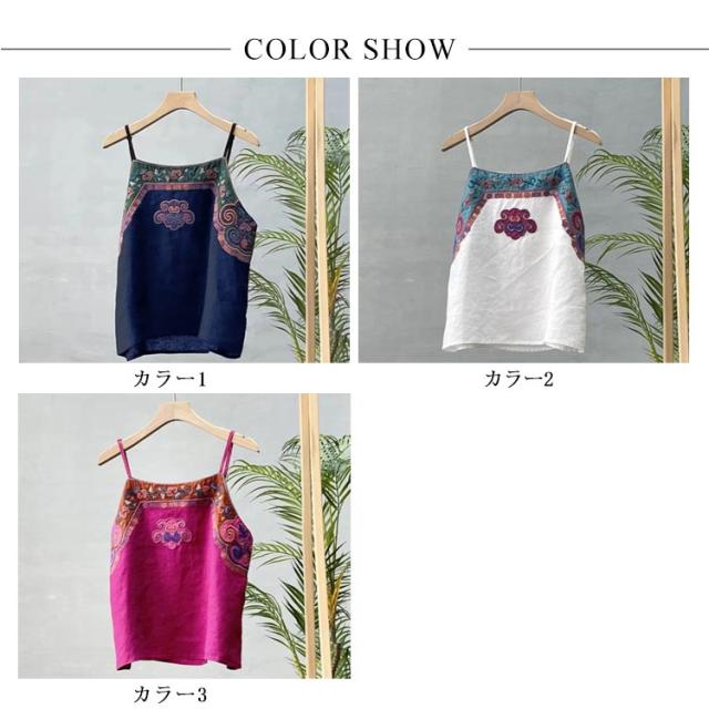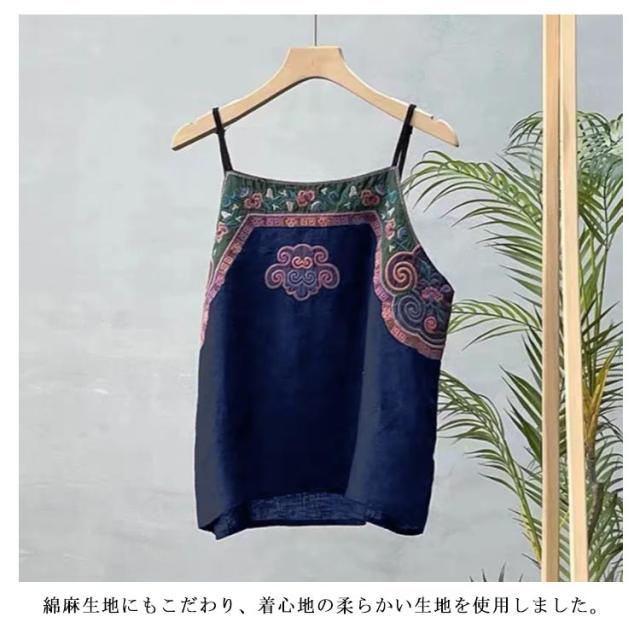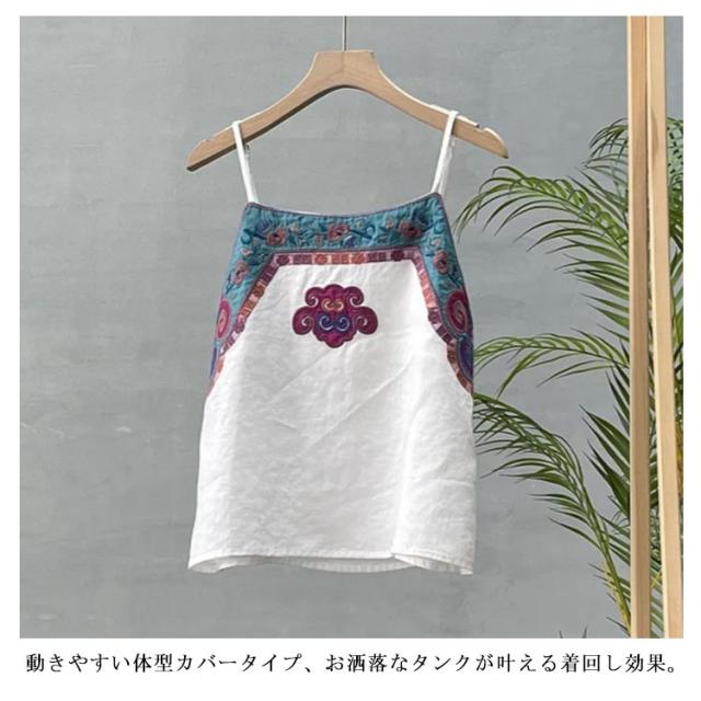 リネン風 キャミソール レディース トップス ノースリーブ インナーキャミ 重ね着 レイヤード 夏 刺? エスニック 着?せ チャイナ風 綿麻 ナチュラル M L XL 2XL 3XL