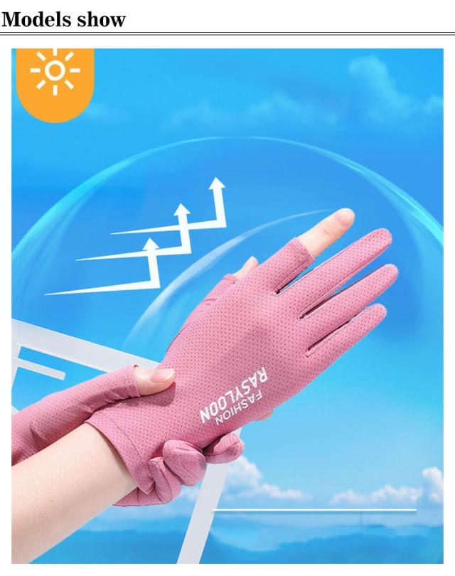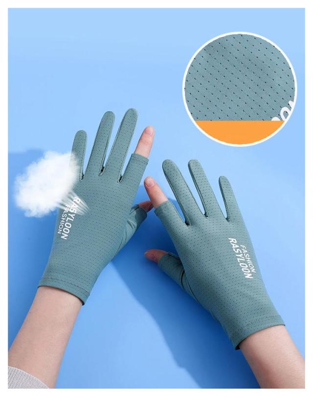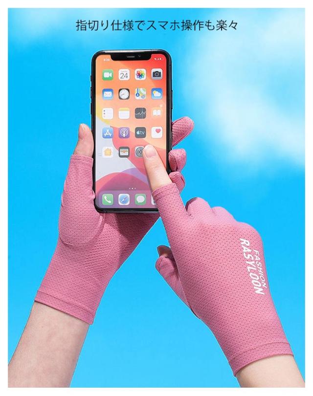 | UVカット手袋、接触冷感なので装着感も心地よい 自転車や車の運転に便利! 指切り仕様でスマホ操作も楽々 | |