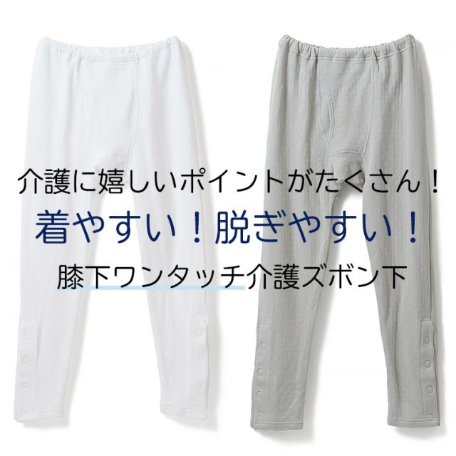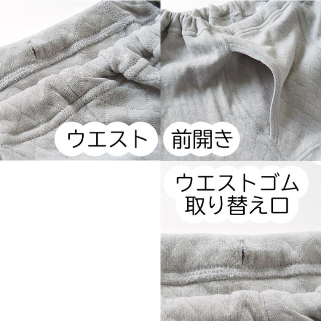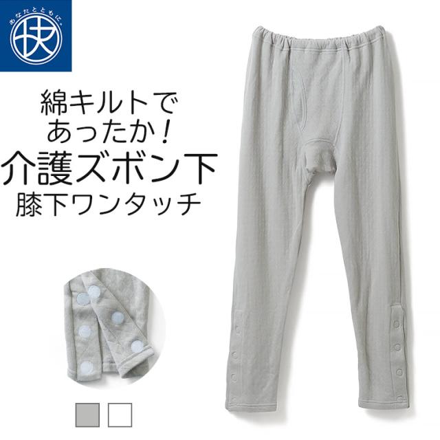膝下ワンタッチ ズボン下 介護 綿キルト メンズ 介護下着 介護ウェア ワンタッチ マジック テープ ボタン シニア 紳士 男性 抗菌防臭 光触媒 あったか あたたかい 肌着 介護用品 入院用 病院用 インナー こころよい Q0061B-R