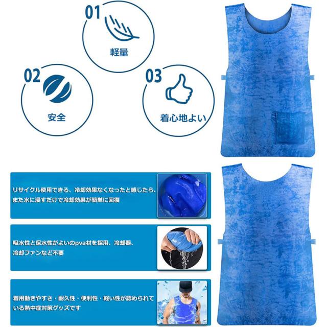 【PVA蒸発冷却材】最新の高品質PVA合成生地を使用した蒸発冷却ベストは、肌にやさしく快適で、汗の排出を促進し、体表面温度を素早く下げます。