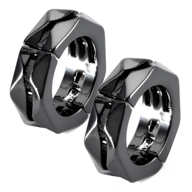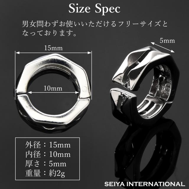 中央に溝を入れどの角度から見てもキラキラと高級感のある輝きを放つダイヤカット、シンプルなフェイクピアスに飽きてしまった方や周りと差をつけたい方におすすめのアクセサリーです。ダイヤカットフェイクピアスはメンズだけではなく、レディースにもお使いいただけます。光の反射により輝きを放ち、エッジを効かせたデザインがあなたの耳元をおしゃれに演出します。耳に直接触れる部分は耳への負担が少なく外れにくい平らなフラット加工をしております。フープイヤリングのサイズは外径15mm 内径10mmフープイヤリングの厚さは約5mm 重さは約2グラムになります。カラーはシルバー ブラックからお選びください。