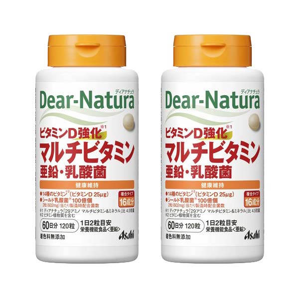 ディアナチュラ ビタミンD強化 マルチビタミン・亜鉛・乳酸菌 60日分 120粒 サプリメント サプリ ビタミンD 亜鉛 乳酸菌 健康サプリ 健康食品 粒タイプ ASAHI アサヒグループ食 2セット