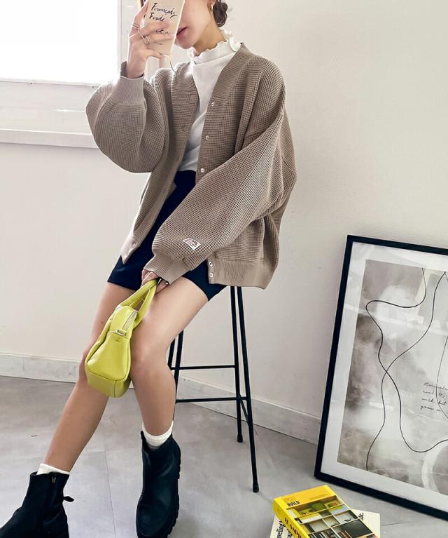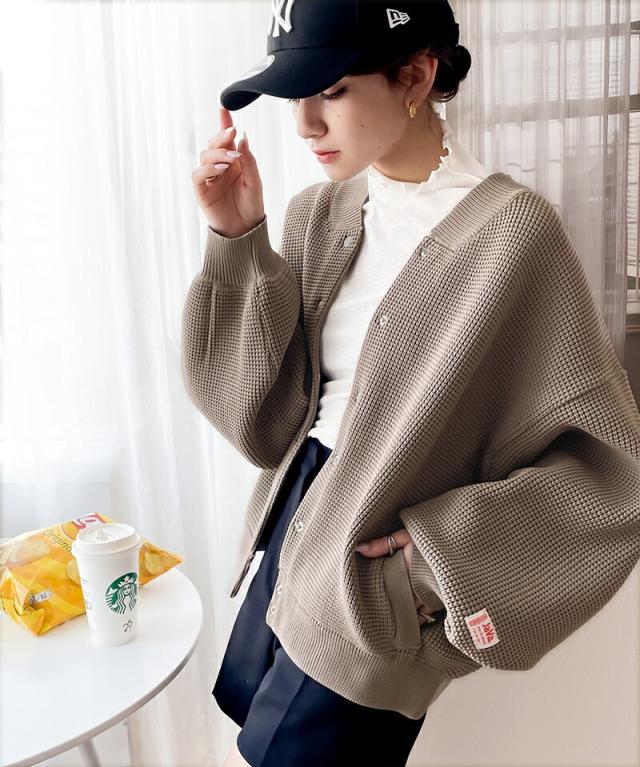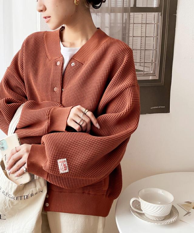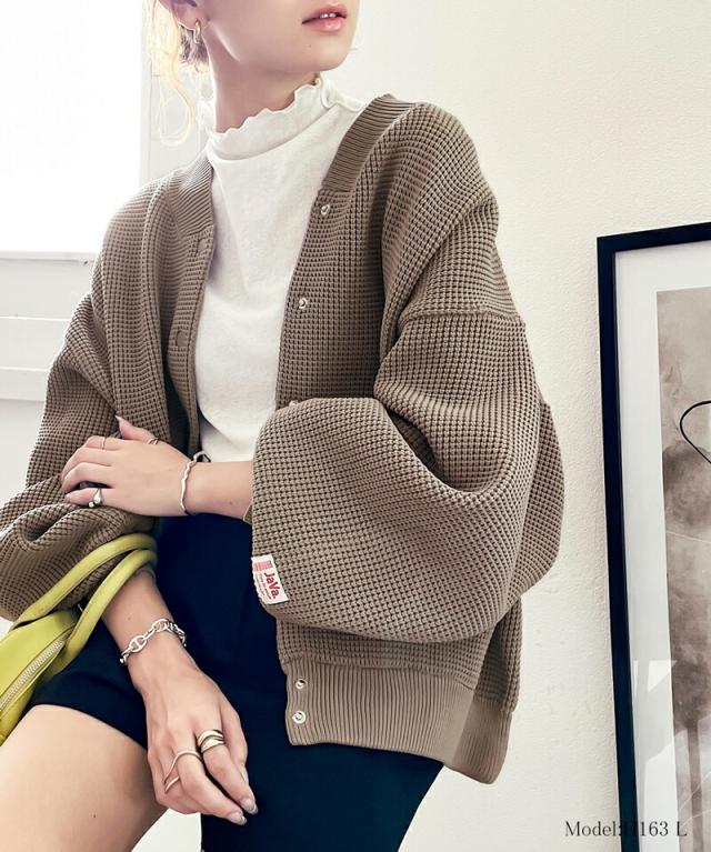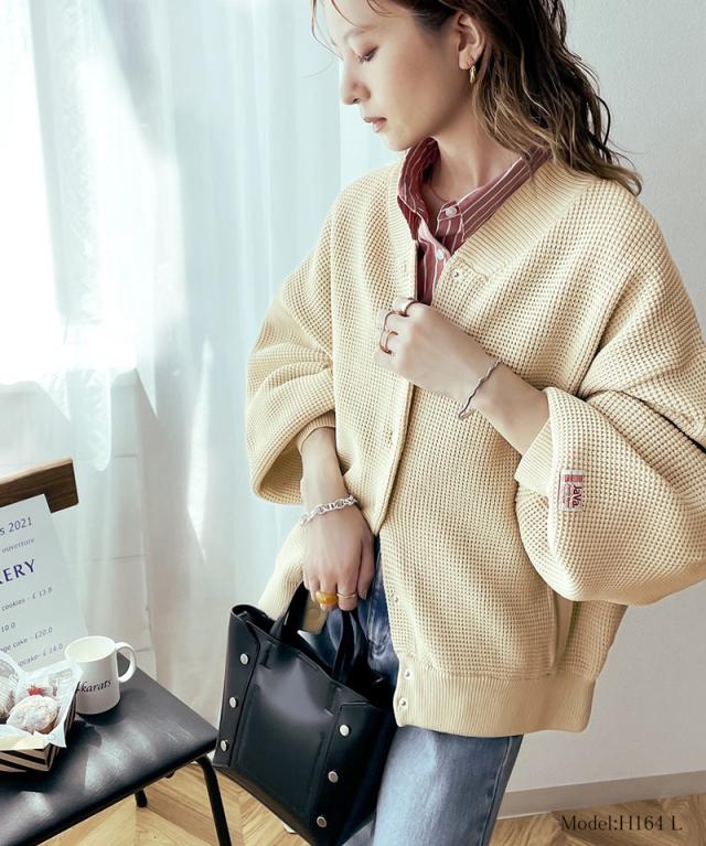 秋新作 クラシカルエルフ レディース 体型カバー 《java ジャバ コラボ》トップス アウター 軽量ニット ワッフル ブルゾン カーディガン 羽織り ライトアウター ユニセックス 大きいサイズ jv1050069