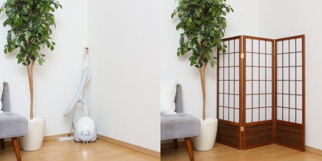 掃除機やモップ、ランドリーバスケットなど、出しっぱなしになりがちな生活用品の目隠しにもぴったり。