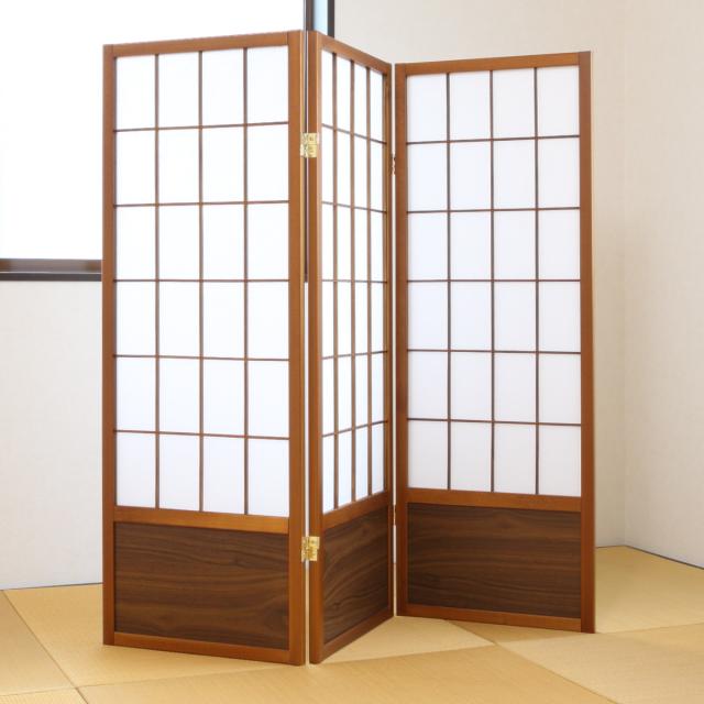 衝立 和風衝立 あずきM 3連 高さ120cm ( 間仕切り 目隠し パーティション 屏風 自立 折りたたみ 和風 障子 スクリーン ついたて 3連スクリーン 仕切り おしゃれ 部屋 和室 玄関 インテリア 木目 格子 軽量 蝶番 パーテーション )