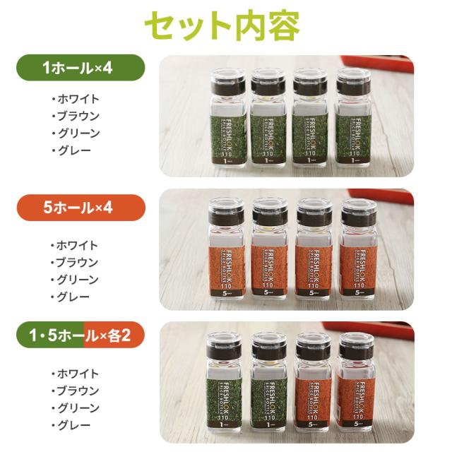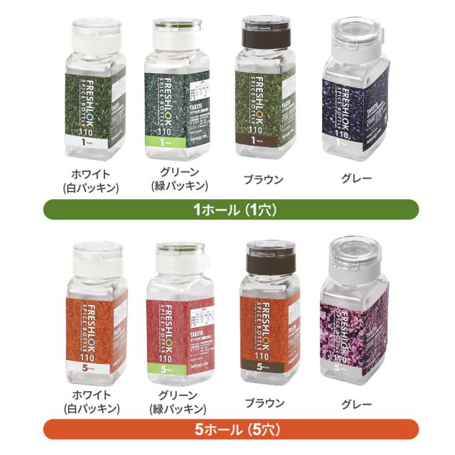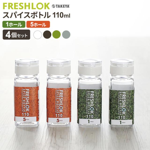 フレッシュロック スパイスボトル 110ml 4個セット 1ホール/5ホール ホワイト/ブラウン/グリーン/グレー | 調味料ケース 保存容器 密閉 詰め替え ボトル 透明 プラスチック キッチン 収納 塩 胡椒 FRESHLOK TAKEYA