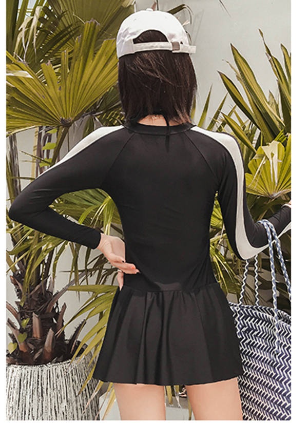水着 レディース ワンピース水着 フィットネス水着 スポーツジムスポーティ 長袖 黒 かわいい 20代 30代 40代 ママ水着 大人 体型カバー 露出対策 オトナ女子 ラッシュガード M L XL 2XL 3XL 4XL 5XL 大きいサイズ 紫外線対策 露出控えめ d1337s1s1la