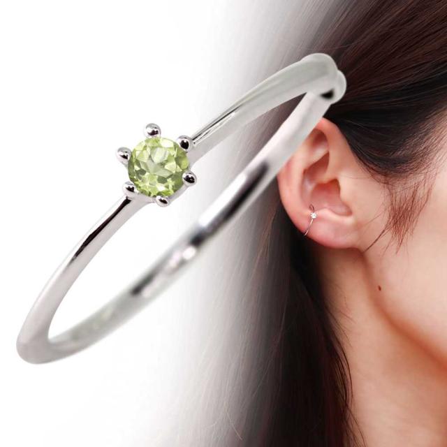 イヤーカフ レディース シンプル クラウン 華奢 プラチナ ペリドット 片耳用 ノンホールピアス イヤカフ