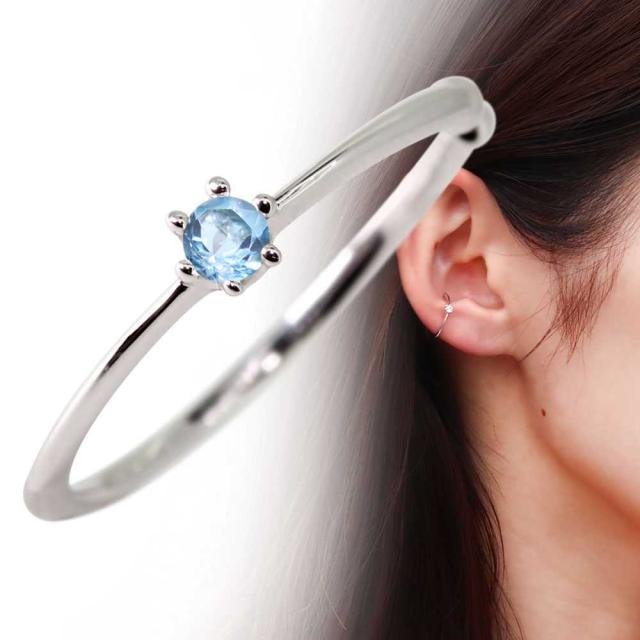 イヤーカフ 片耳用 レディース シンプル イヤカフ 王冠 シルバー 誕生石 11月 ブルートパーズ 華奢
