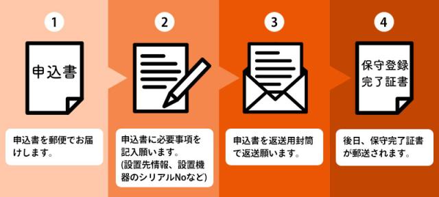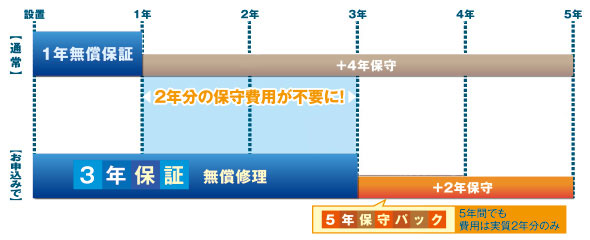 ■5年保守パックの購入・申し込みで、無償の3年保証も申し込み手続きが完了します。