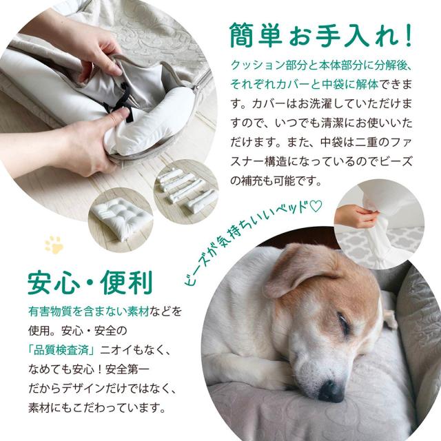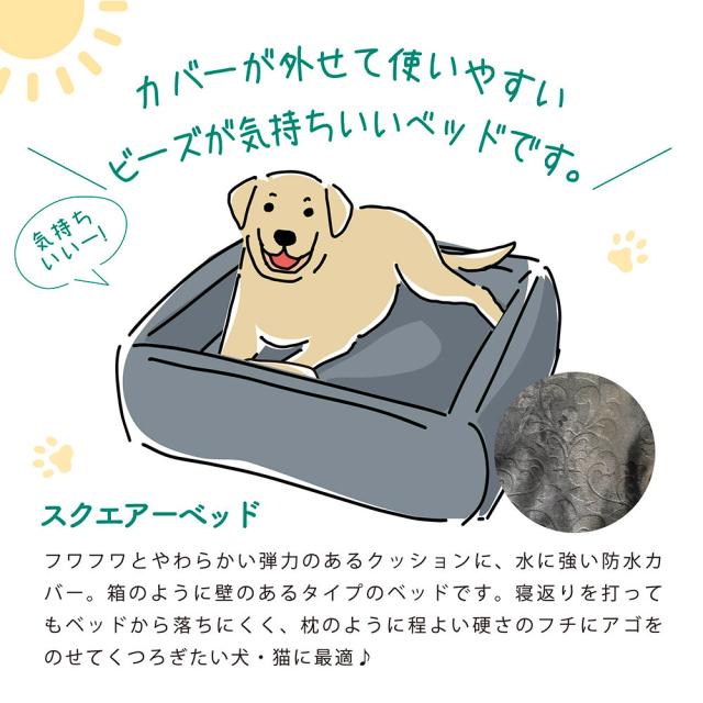 ペットグッズ 犬猫用品 スクウェアーベッド カドラー アラベスク柄 高級 エレガント 寝具 あご枕 撥水 カバー式 ビーズベッド 補充 防水加工 おしゃれ 取り外し可能 洗濯可能 防水品質検査 噛み切り検査 ウォッシャブル 洗える 犬 猫 ペットベット 大型犬 FPC-D314S