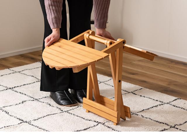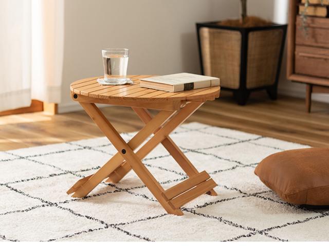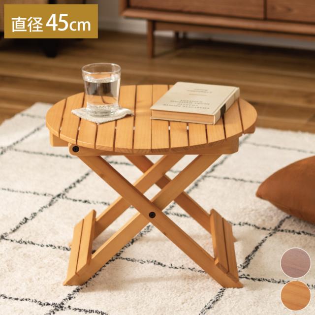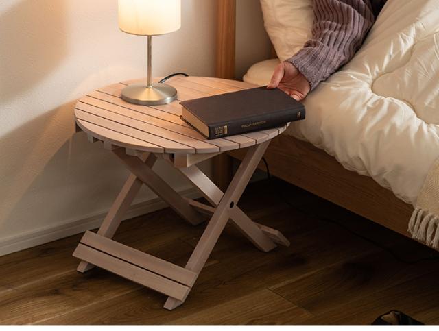 フォールディングテーブル 直径45cm テーブル 折り畳み 折りたたみ 簡易テーブル スリム 収納 アウトドア お洒落 ナチュラル ホワイト 持ち運び Sサイズ サイドテーブル ベッドサイド(代引不可)【送料無料】
