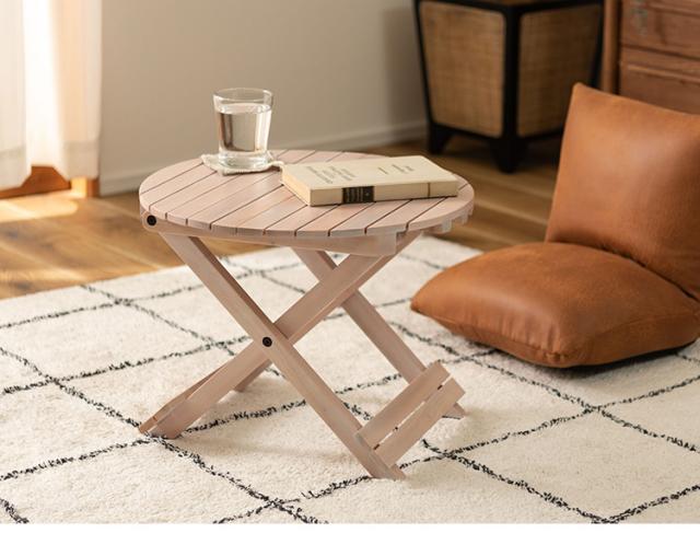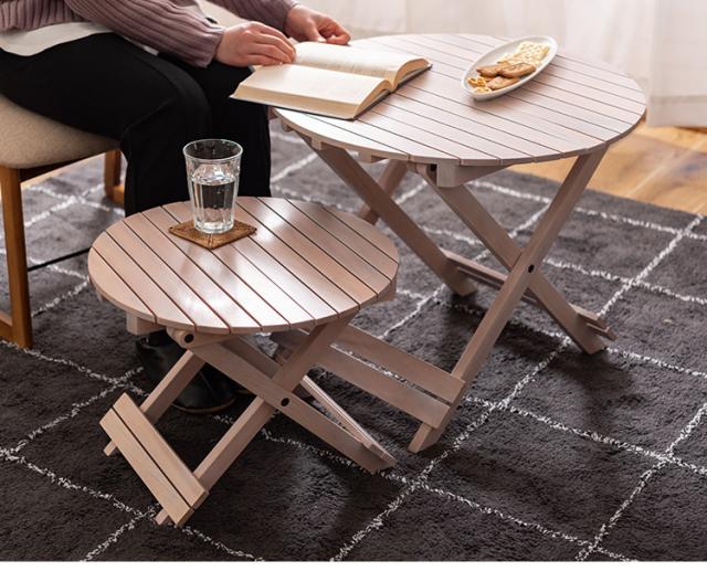 工具不要で簡単組み立て、ワンタッチで折りたためる便利なラウンドテーブルです。