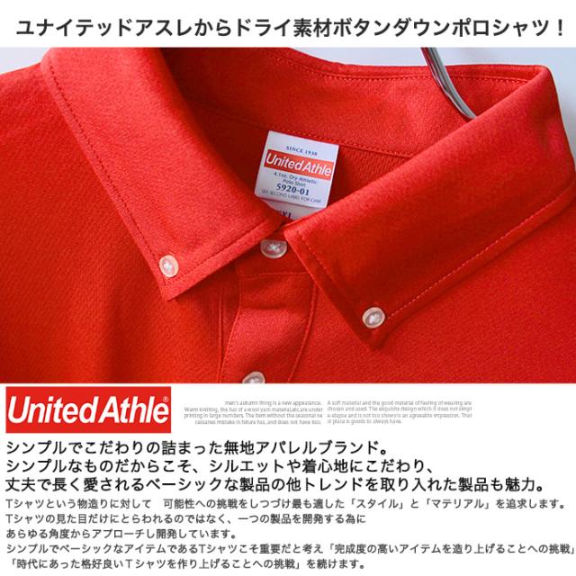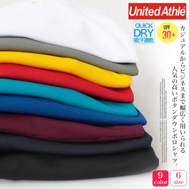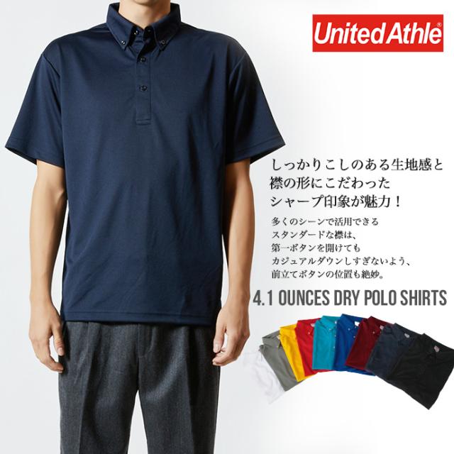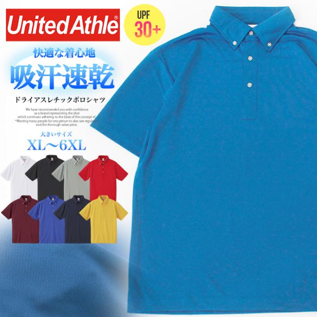 メンズ United Athle ユナイテッドアスレ ポロシャツ 4.1オンス トップス 吸水速乾 UPF30 半袖 ボタンダウン ドライ アスレチック 無地 ビッグサイズ 大きいサイズ メール便なら送料無料