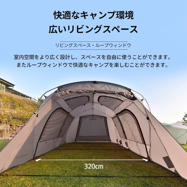 サイズ:使用時 560×320×(h)210cm / 収納時 74×37×37cm / インナーテント 300(250)×225×(h)185cm