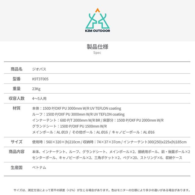 【新品】KZM ジオパス テント 4〜5人用 ドームテント フルクローズ タープ キャンプ アウトドア ファミリー 簡単組立 キャンプ用品 防災 4人用 5人用