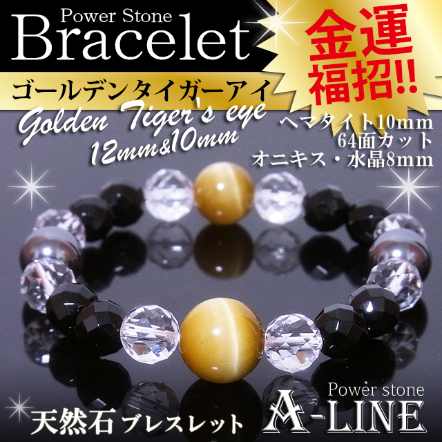 AAAゴールデンタイガーアイ12mm&10mm・64面カットオニキス&64面カットクリスタル8mm・国産高級オペロンゴム