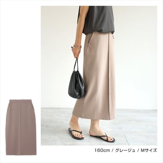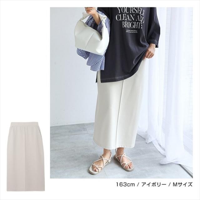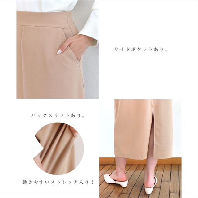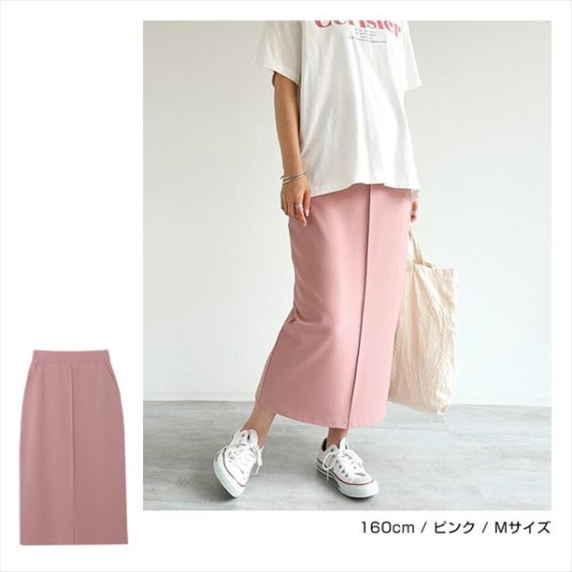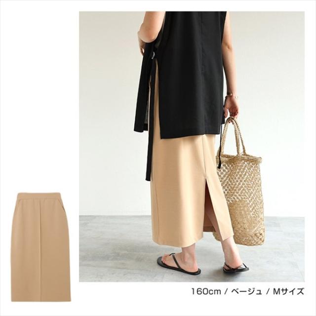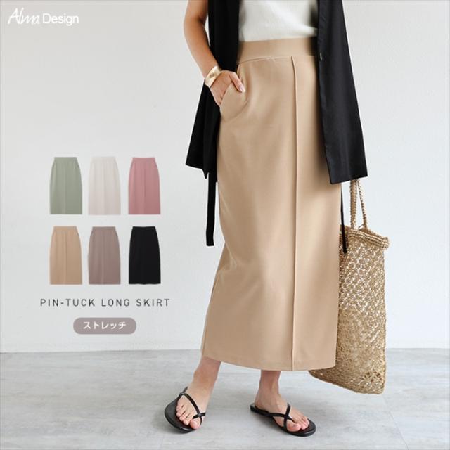 梨地ポンチ タイトスカート ウエストゴム レディース サイドポケット キレイめ 上品 スタイルアップ ストレッチ ボトムス ボトム ロング丈 楽チン おしゃれ かわいい 大人 学生 カジュアル きれいめ ナチュラル SK ロングスカート 黒 白 M L 春 夏 秋