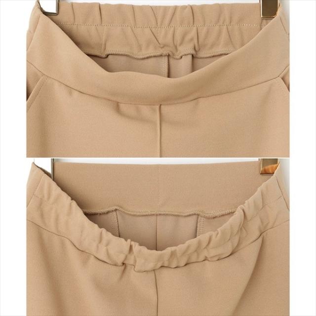 シーズン問わず着られて、お家で洗えるのも嬉しいポイントです♪ウエストゴム入りの楽ちん仕様♪便利なサイドポケット付き。タイトすぎず、ゆるすぎない絶妙サイズ。程よいフィット感でスタイルアップを叶えるシルエットにこだわりました。センターのピンタックが縦のラインを強調し、上品に見せてくれる1枚です。裏地なし