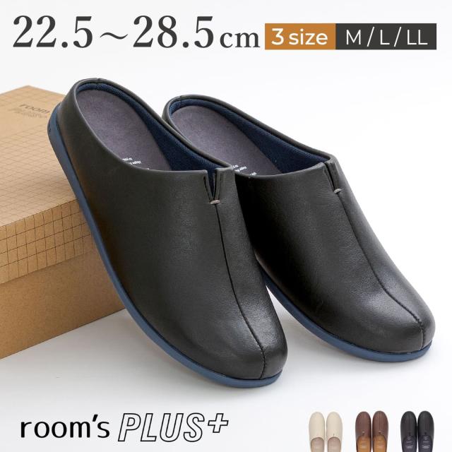 スリッパ ルームズプラス 約22.5〜28.5cm 3サイズ ( ルームシューズ ルームスリッパ 室内 レディース メンズ おしゃれ 滑り止め フェイクレザー 外履き 軽い 室内履き シンプル 参観 学校行事 オフィス オフィスカジュアル )