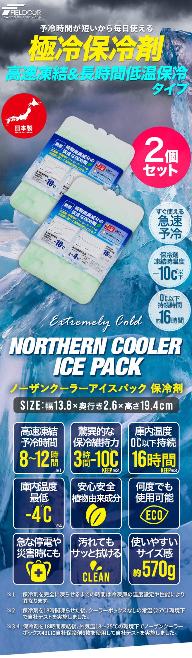 保冷剤 最強 冷凍 氷点下 ノーザンクーラー アイスパック 2個組 13.8×19.4cm 570g FIELDOOR 保冷パック NORTHERN COOLER ICE PACK 極冷保冷剤 長時間 繰り返し 日本製 クーラーボックス 保冷バッグ アウトドア キャンプ 釣り 1年保証 送料無料