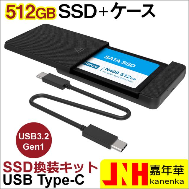 SSD 512GB 換装キット JNH製 USB Type-C データ簡単移行 外付けストレージ 内蔵型 2.5インチ 7mm SATA III 3D Nand TLC Hanye N400 SSD付属 ネコポス送料無料 ポイント消化