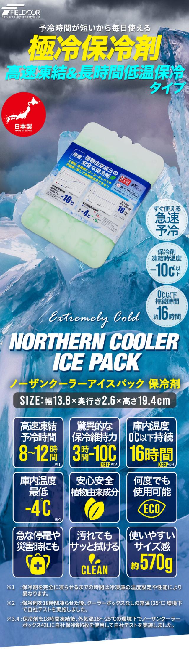 保冷剤 最強 冷凍 氷点下 ノーザンクーラー アイスパック 1個単品 13.8×19.4cm 570g FIELDOOR 保冷パック NORTHERN COOLER ICE PACK 極冷保冷剤 長時間 繰り返し 日本製 クーラーボックス 保冷バッグ アウトドア キャンプ 釣り 1年保証 送料無料