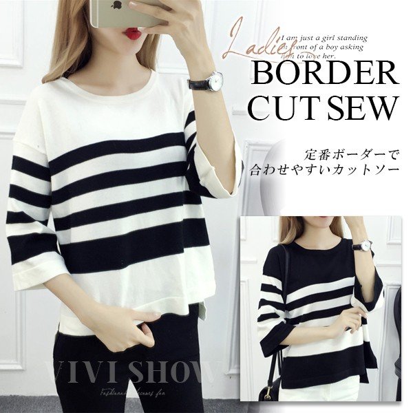 トップス カットソー レディース ニット ボーダー柄 シンプル プルオーバー abr