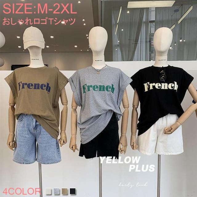 レディース トップス カットソー ロゴTシャツ フロントロゴ ロゴプリント フレンチスリーブ 半袖 シンプル 大人カジュアル 二の腕隠し 2022新作 vivishow