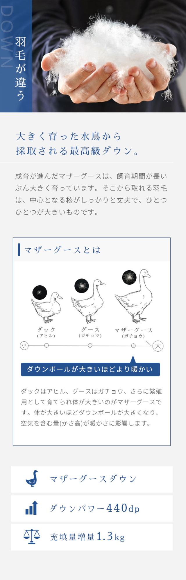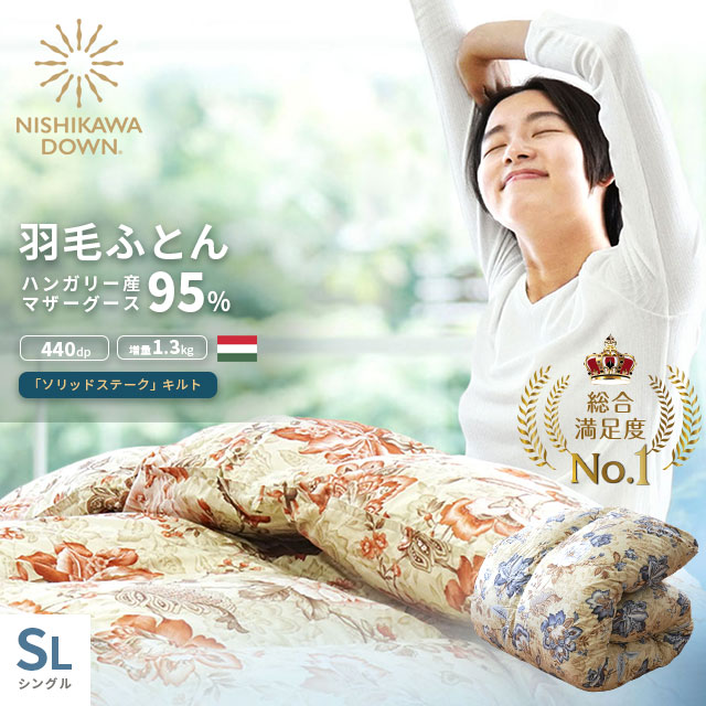 [ keyword | 西川 羽毛布団 マザーグース シングル ダウン95% 増量1.3kg 440dp シングル 150×210 完全立体キルト 国内洗浄 ハンガリー ホワイトグース フレッシュアップ 日本製 高級 羽毛布団 ピンク ブルー 440ダウンパワー ]