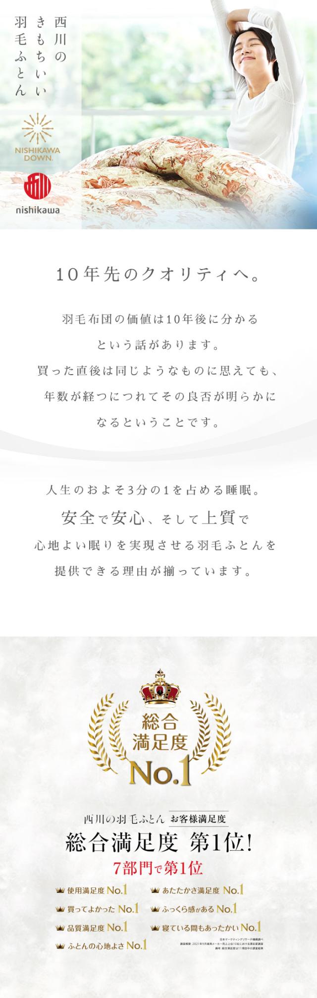 総合満足度第一位!高品質な西川ダウンの羽毛ふとん