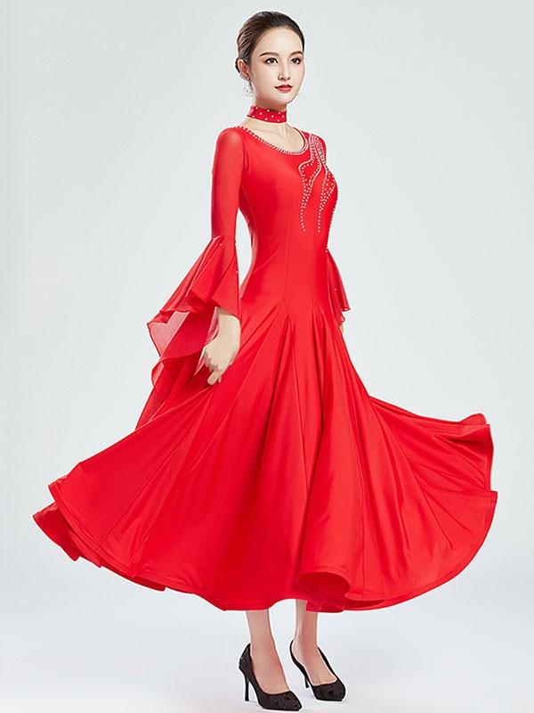 【送料無料】社交ダンスドレス 広がる裾 競技用ドレス ダンス衣装 ダンスウェア ステージ衣装 大きいサイズ カラオケ スタンダード ドレス ワルツ ワンピースドレス 舞台 演奏会 発表会ドレス パーティー デモ 衣装 S M L XL 2XL 3XL