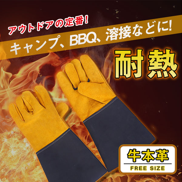 耐熱グローブ 手袋 キャンプ バーベキュー 薪ストーブ 溶接 建設 土木 耐久性 作業用 BBQ 一般作業 牛革 現場仕事 アウト