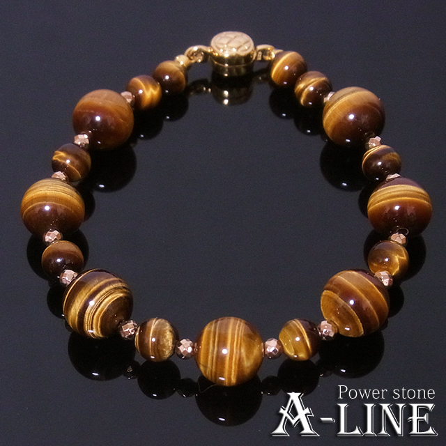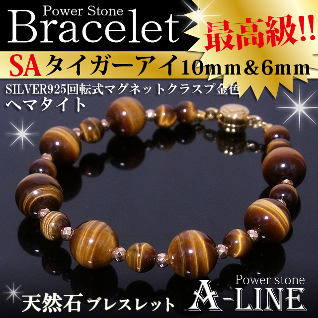 パワーストーン 高級ワイヤーブレスレット SAタイガーアイ10mm&6mm 金色パーツ 高級ケース付き ppw280