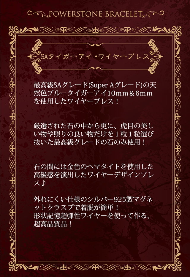最高級SAグレード(Super Aグレード)のタイガーアイ10mm&6mmを使用したワイヤーブレス!