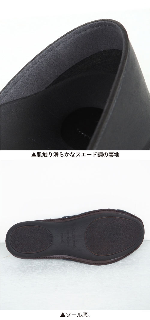 ■アウトソールには「バブーシュソール」を採用!ぺたんこシューズの感覚で履けるフラットな底面ですが、地面からの衝撃を吸収し、足裏に負担をかけにくい形状となっています。