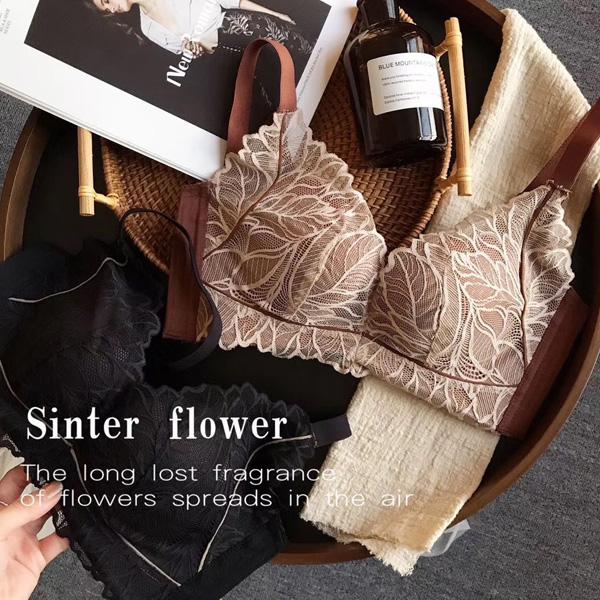 大胆な大きめフラワー刺繍をくすみエレガントなカラーに染め、クラシカルな印象のブラジャー・ショーツセット。