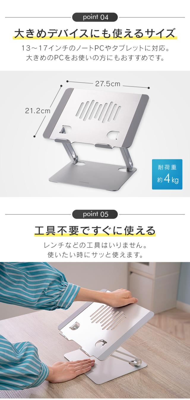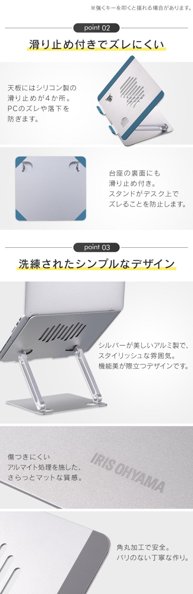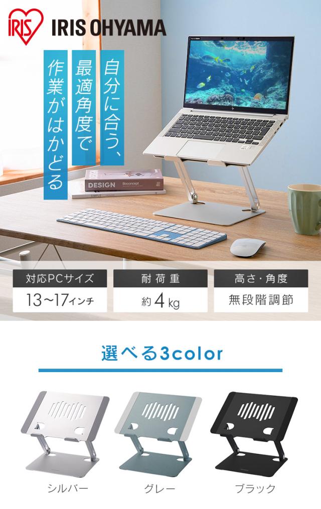 パソコンスタンド 据え置き アルミ パソコン スタンド 13〜17インチ対応 アイリスオーヤマ PCスタンド 軽量 ノートパソコン ノートパソコンスタンド シンプル 高さ 角度 無段階調節 組み立て簡単 デスク ノートPCスタンド NPS-S *