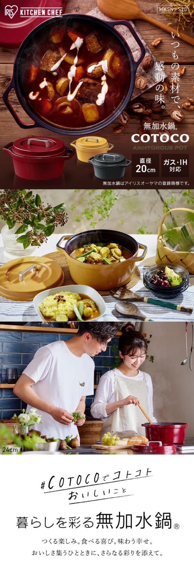 鍋 20cm 無加水鍋 IH対応 おしゃれ COTOCO MKSN-S20 ビーツレッド サフランイエロー チャコールグレー 全3色 1〜2人向け 鍋 なべ 無加水調理 調理 料理 IH ガス ガスコンロ オーブン ラジエントヒーター 両手鍋 アイリスオーヤマ 送料無料