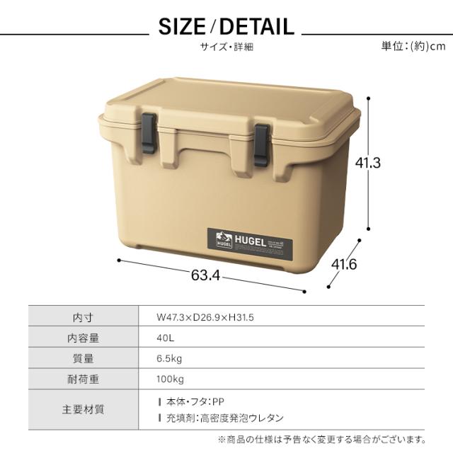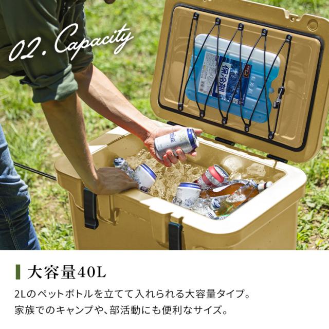 クーラーボックス 保冷ボックス 大型 40L 保冷力 最大 8.4日 ハード 釣り スポーツ キャンプ アウトドア レジャー ペットボトル 飲み物 缶 バーベキュー サイドテーブル 座れる 40リットル クーラーバッグ BOX アイリスオーヤマ HUGEL TC-40 *