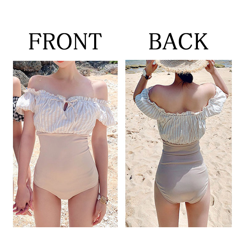 ギンガムチェックオフショル水着 ワンピース水着 オフショルダー フェミニン 甘め水着 レディース 水着 体型カバー 人気 盛れる セクシー レトロ リゾート 20代 30代 オトナ女子 小胸 痩せて見える 可愛い お洒落 ギンガムチェック 異素材ミックス 切り替え 海