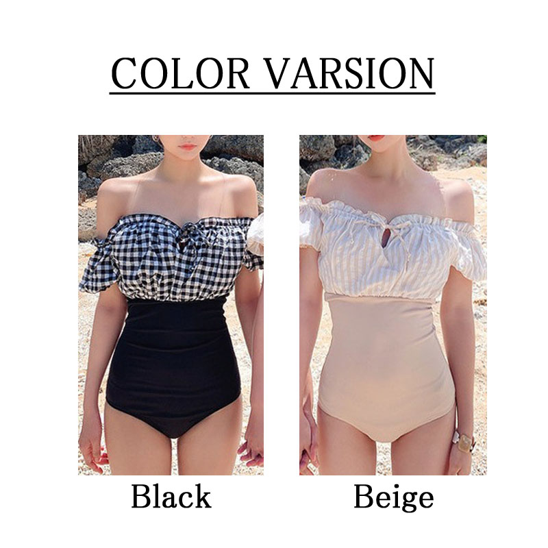 ギンガムチェックオフショル水着 ワンピース水着 オフショルダー