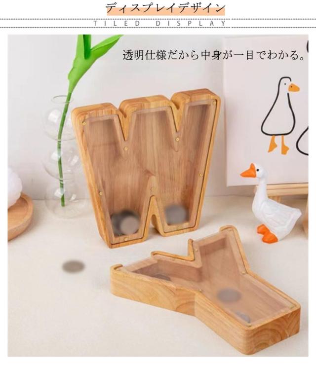 | 個性的な英字デザインのコインホルダー。 透明仕様だから中身が一目でわかる。 折りたためば紙幣も収納できるため、貯金箱としても便利です。 ナチュラルな木製なので、インテリアとしての存在感もバッチリ! | |