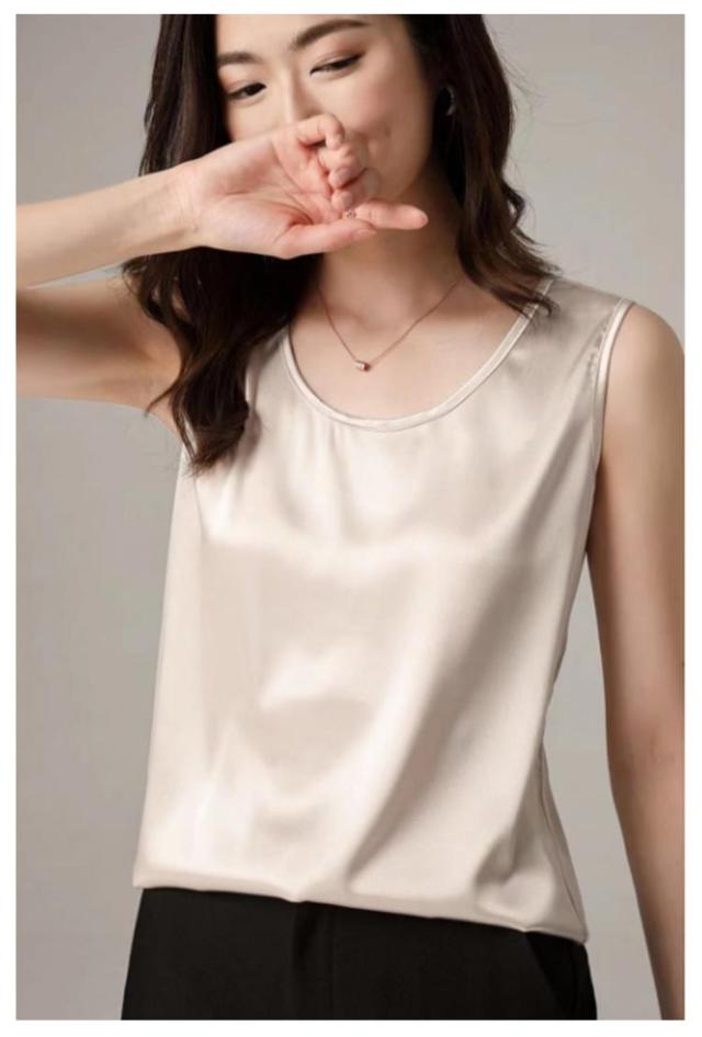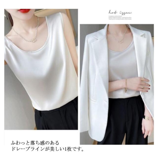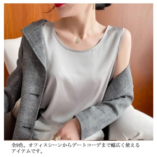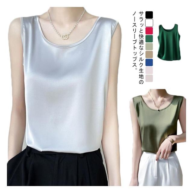 全10色 シルク タンクトップ ストレッチ レディース ノースリーブ トップス Uネック サテン シルクインナー インナー フォーマル 光沢 絹 上品 シンプル 春夏 エレガント S M L XL 2XL 3XL