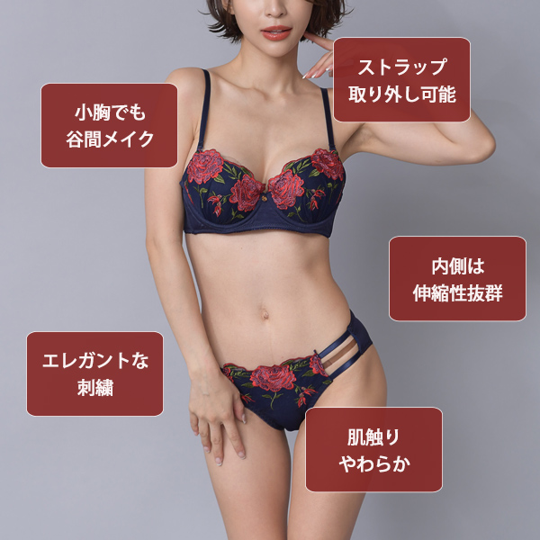 | [仕様] | パッド :有 パッド取り外し:可 ワイヤー :有 肩紐取り外し :可 ホック :2段3列 ショーツ透け感:無 |