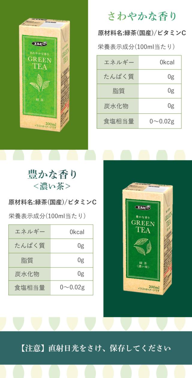 【30本】緑茶 200ml エルビー 全2種類 お茶 GREENTEA 香り 軽量 手軽 エコ 紙パック 少容量