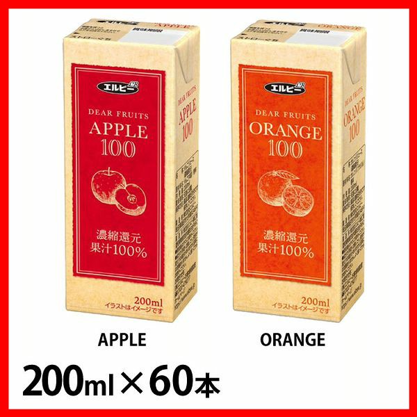 【60本】ジュース100% 200ml エルビー [代引不可] 全2種類 りんご リンゴ 果汁 ジュース 濃縮還元 リンゴジュース りんごジュース 紙パック 少容量