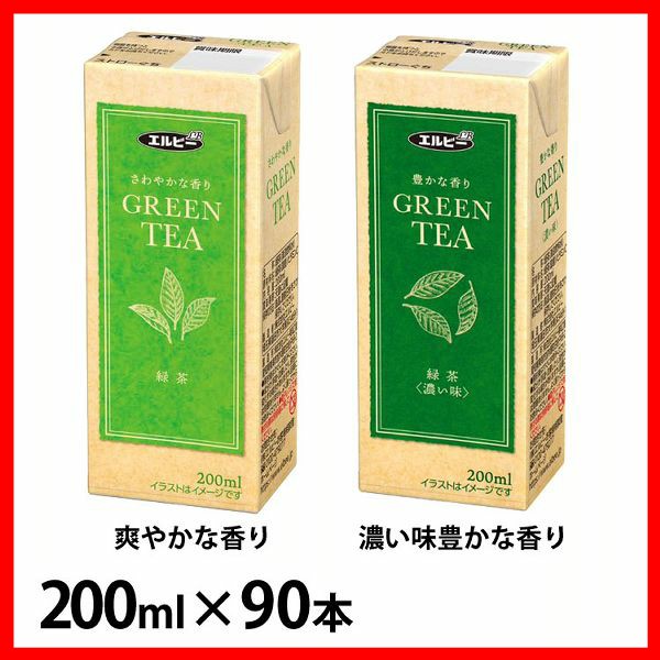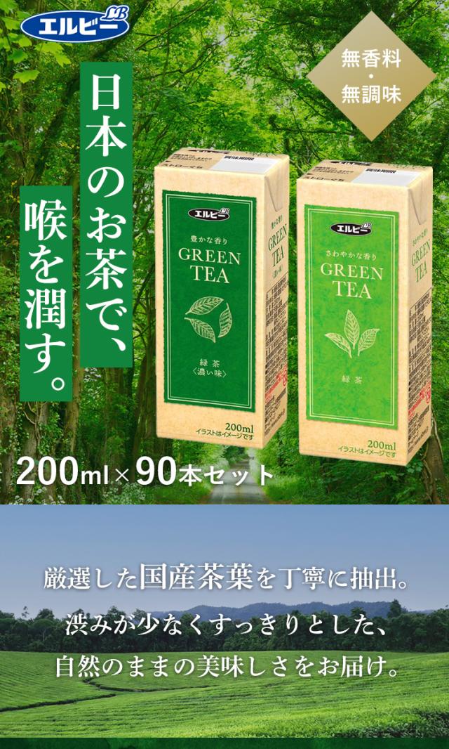 【90本】緑茶 200ml エルビー [代引不可] 全2種類 お茶 GREENTEA 香り 軽量 手軽 エコ 紙パック 少容量 送料無料