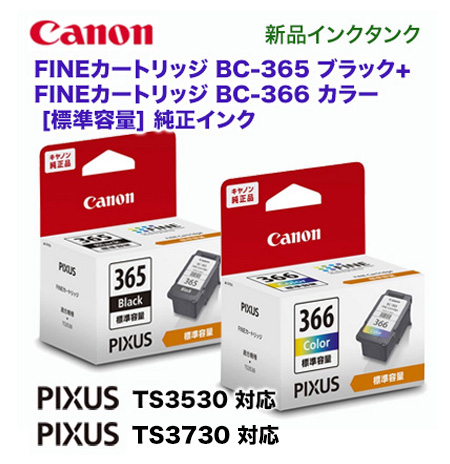 ★注意:代引決済不可★ キヤノン FINEカートリッジ BC-365 ブラック + BC-366 カラー 純正インクセット(標準容量) (PIXUS TS3530 / PIXUS TS3730 対応)(4985C001 + 4991C001)